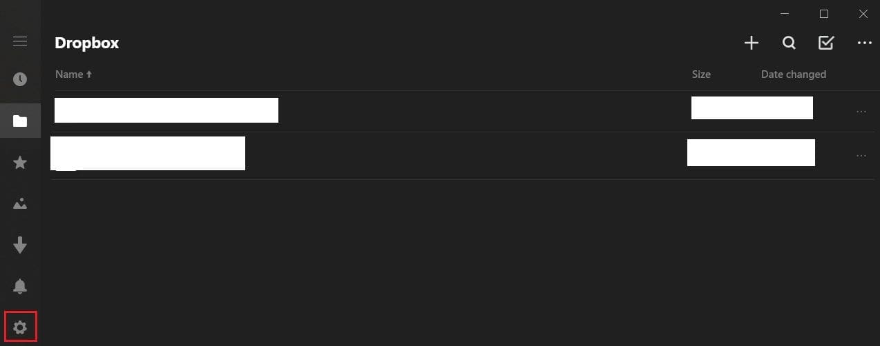 To get to the camera upload setting, you need to go through the account settings. You first need to click on the cogwheel icon at the bottom of the column on the left to get there.