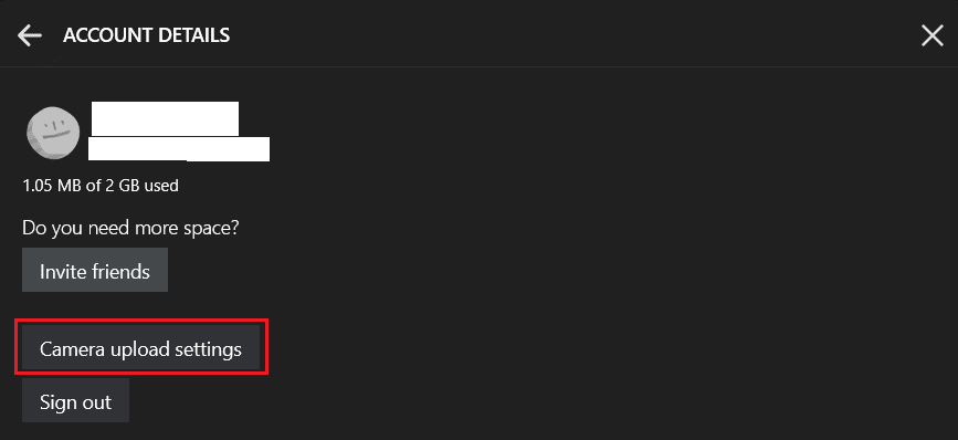 In the account settings, click on “Camera upload settings” to get to the right page.